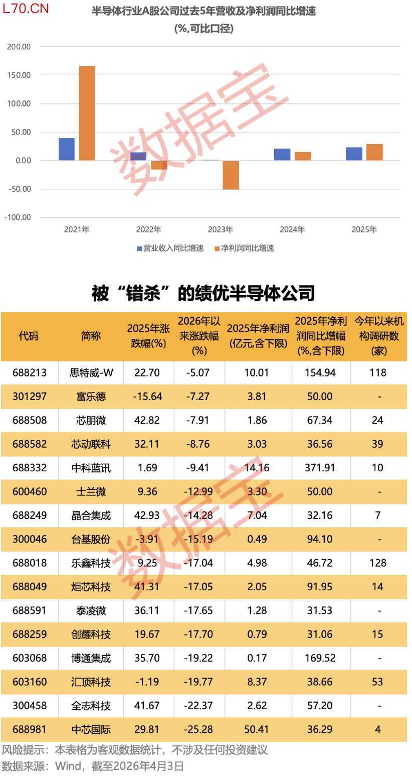 半导体行业营收及净利润加速增长 16只被“错杀”的绩优股曝光